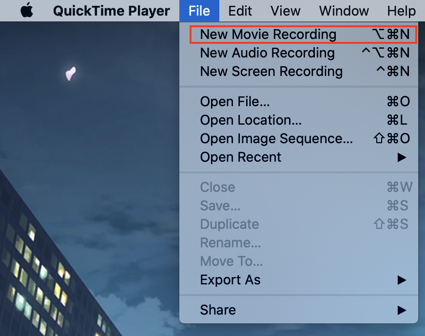 可以直接使用 QuickTime Player 录制 FaceTime 视频。在「应用程序」文件夹里找到相应的图标,打开后选择「文件 – 新建影片录制」,点击录制按钮即可开始录制。Option + 点击录制键 = 暂停录制;再次点击录制键 = 停止播放。