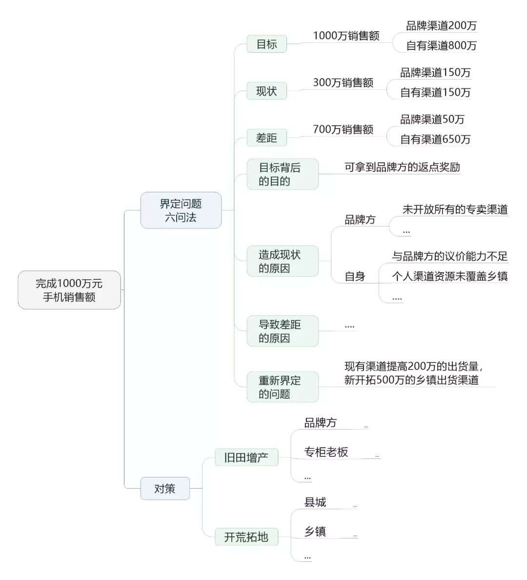 更高效的做法是,你至少要先用界定问题六问法,识别清楚现有的销售额差距,再分析清楚导致差距的原因。