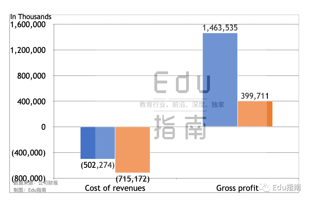 报告期内,高途公司的收入成本为7.2亿元,同比2020年同期的5.0亿元,增加30%。毛利为4.0亿元,同比2020年同期的14.6亿元,减少73%。