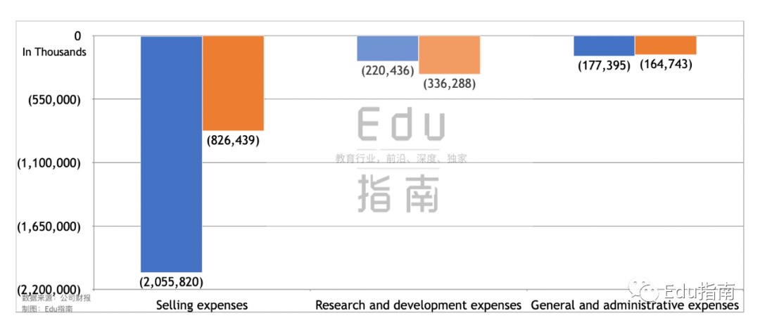 经营成本方面,高途公司Q3销售支出为8.3亿元,同比2020年Q3的20.6亿元,该项支出减少60%。研发成本为3.4亿元,同比增加53%支出。一般与行政成本为1.6亿元,同比减少7%支出。