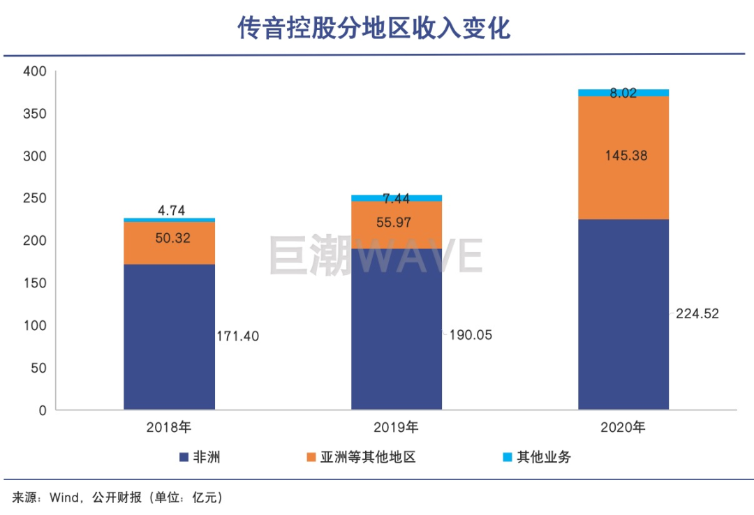 而在这些新兴市场,传音面对的市场环境与非洲截然不同。在印度、拉美、东南亚,中国厂商早已深入布局,而传音是新玩家,因而需要投入大量成本开展营销、打造品牌。财报显示,传音2020年亚洲等其他地区业务的毛利率为18.27%,远低于非洲业务的毛利率30.99%。