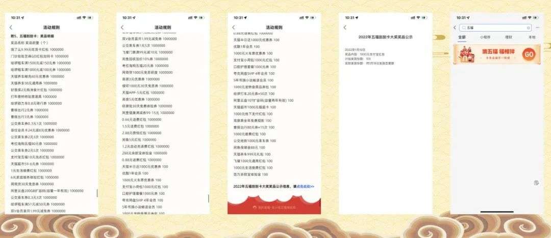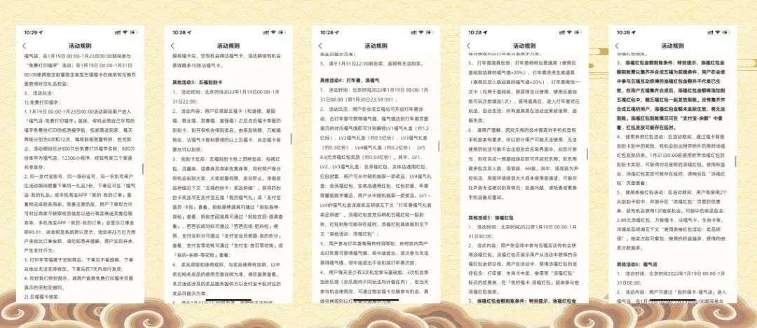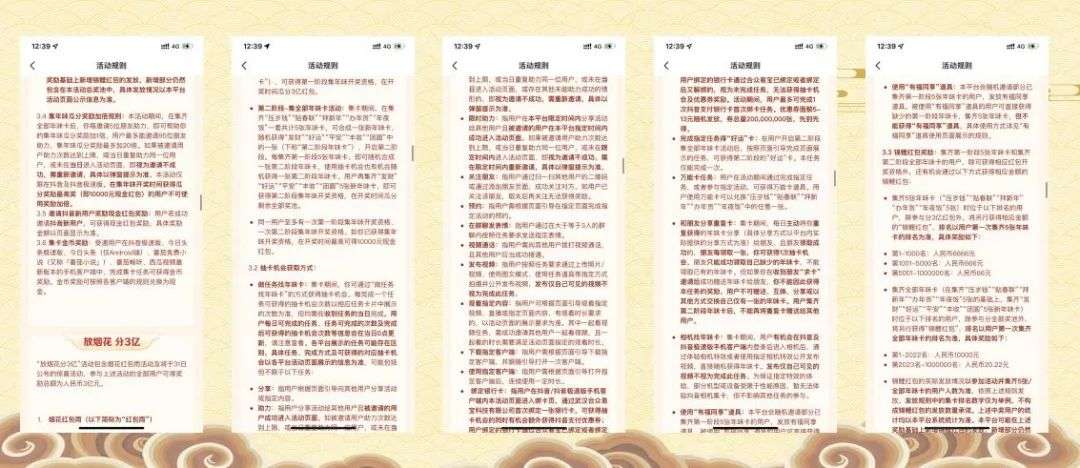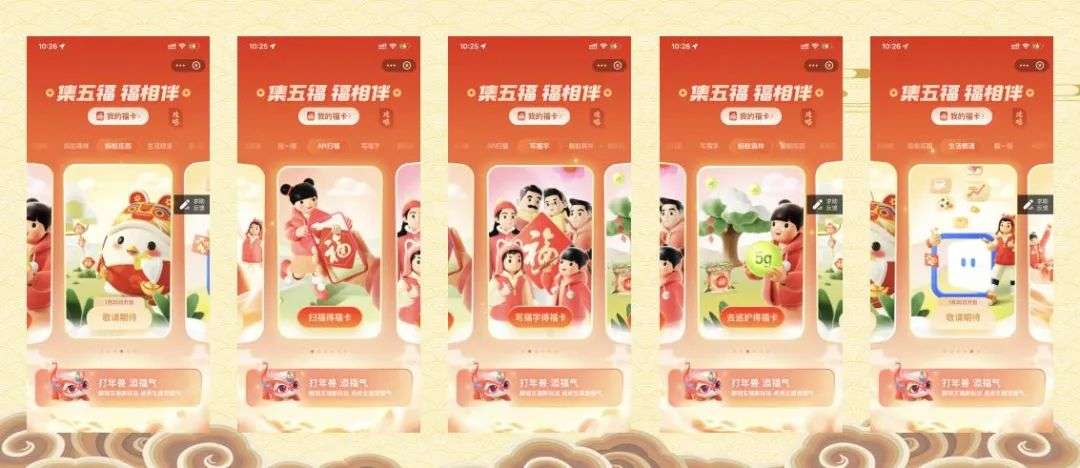 第二阶段:集5张新年味卡,在获得第一阶段的5张年味卡后可以获得第二阶段的年味卡,集齐“发财、好运、平安、丰收、团圆”5张新年味卡,剩余全部奖池;