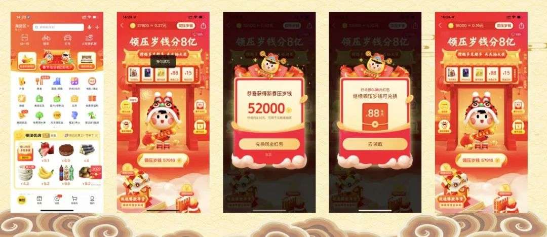《美团》-【领压岁钱分8亿】“领压岁钱的金币换现金”(总计8亿);