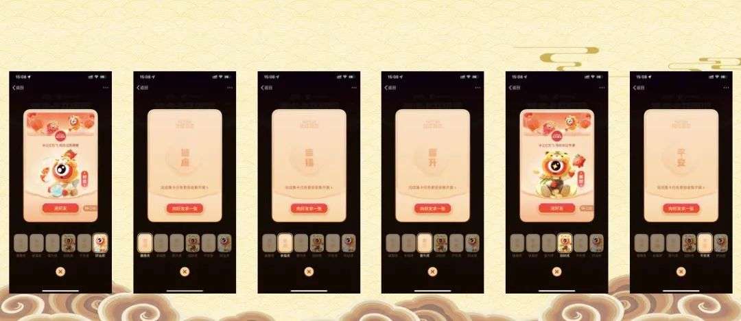 1)奖励机制:第一阶段抽必得“拜新年”卡、控制点在“压岁钱”,第二阶段抽卡随机得到5个年味卡控制点在“好运”