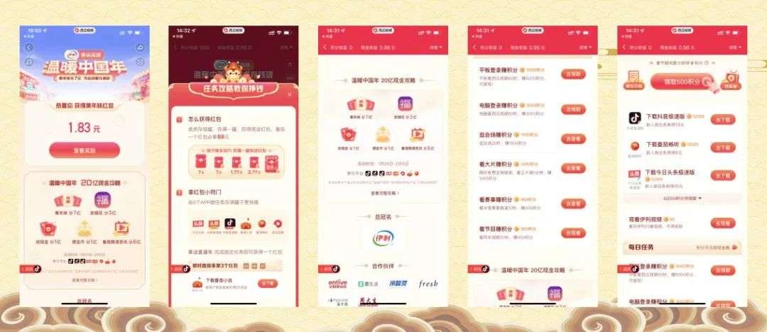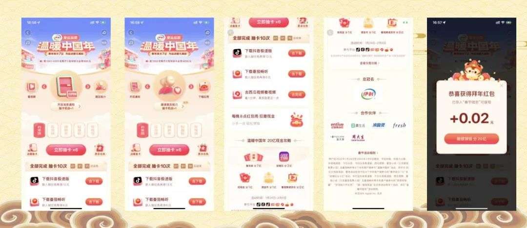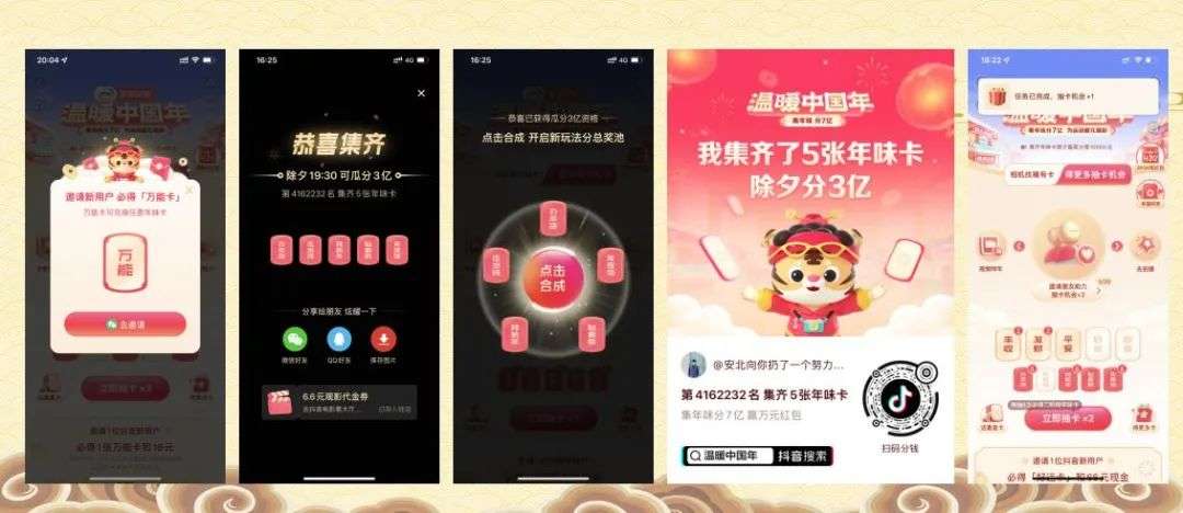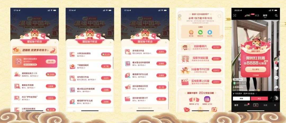 《抖音》-【温暖中国年】“集卡分7亿”“放烟花&红包雨3亿”“抢现金1亿”“赞金币1亿”“看视频资讯8亿”(总计20亿)