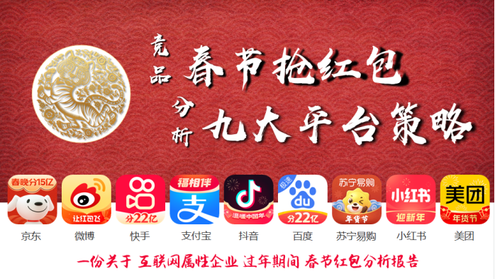 介绍:经历3周体验了各平台活动,用6周时间深度剖析了,各平台“春节活动”上迎合春节气氛并串联冬奥,达成了刺激用户增长、留存与营收等活动目标。抢红包在春节期间是必不可少的活动,2022年也不例外,从抖音到京东、从快手到支付、再到百度、小红手、微博、美团、苏宁易购等9大平台,都推出了如春节集卡片,跳一跳、红包雨等活动形式。