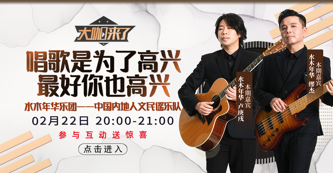 2022年2月22日,中国内地人文民谣歌唱组合“水木年华乐团”成员卢庚戌、缪杰做客《大咖来了》,聊一聊他们的生活与音乐。