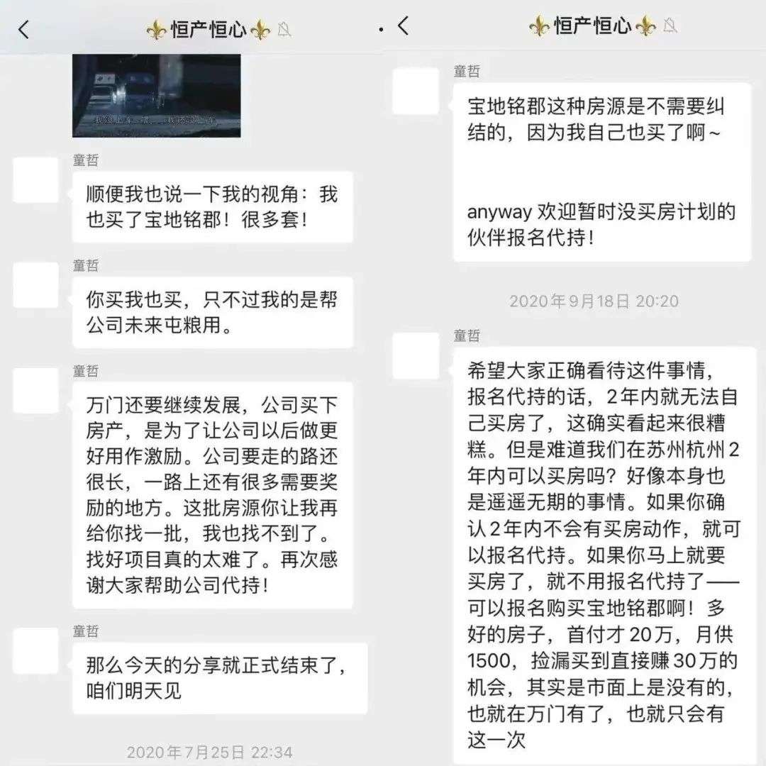 除了被拖欠工资和社保公积金,部分在职和离职员工还有共同焦灼的事情。Leon在万门任职多年,他表示,童哲一直以来都非常热衷于带员工投资房产。