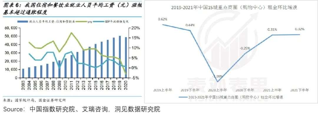 如下图,人工成本增长维持了多年以来的增长趋势;而租金成本从2020下半年开始,也呈现V型反弹,增速逼近疫情前水平。