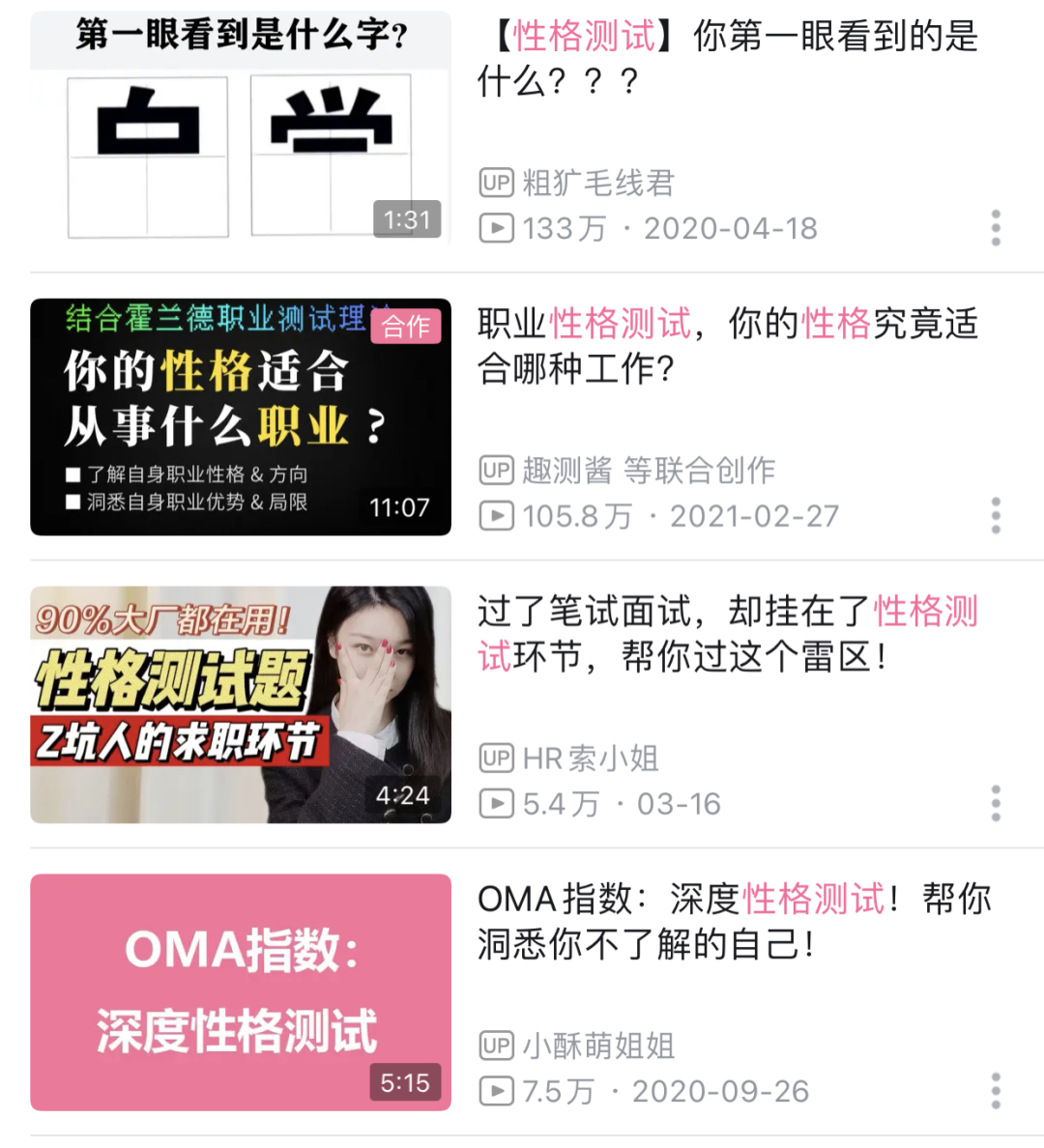 随着发展的不断专精化,除了人力资源评估工具之外,性格测试进化成为自我发现的工具,进入世俗化的领域后,也产生了更多变量和新奇玩法。性格测试由此走向了大众。