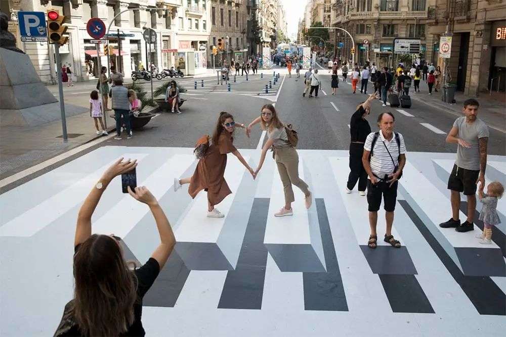 但这种因为视觉角度造成的错觉,是否也可以利用起来,创造出更抓人眼球的人行道?3D 斑马线人行道应运而生。