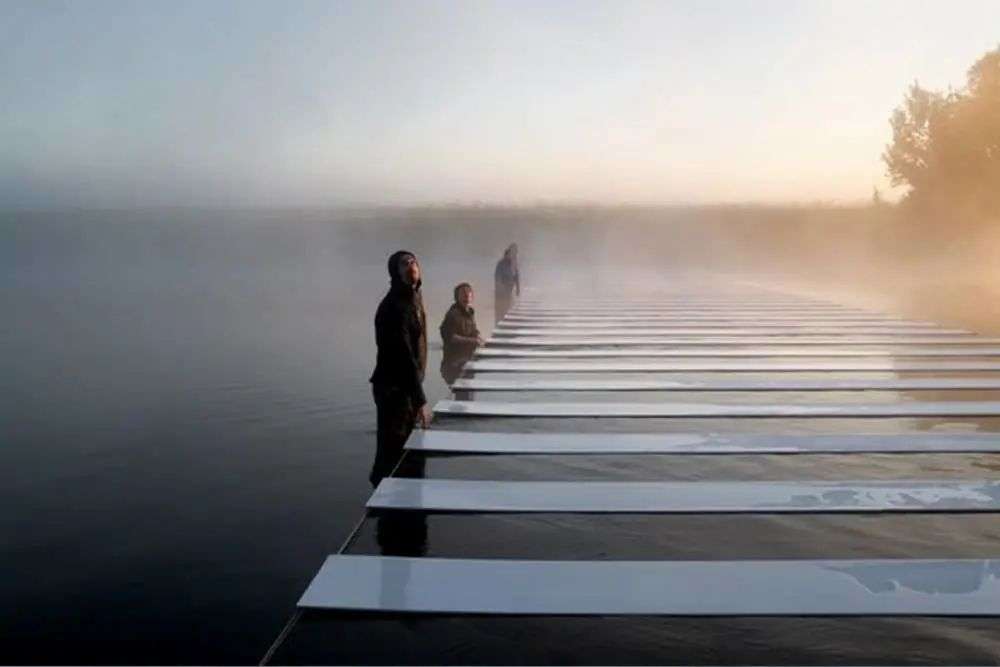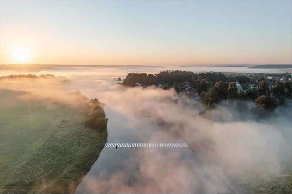 这条人行道横跨河流,两边分别是辽阔的平原和看不到尽头的山野。艺术家将站在这条人行道的自己,描述成「站在安静而雾气迷绕的自然世界和即将到来的灾难之间的路口」。他希望通过这个作品,提醒大家更多去关注自然与遗产保护问题。