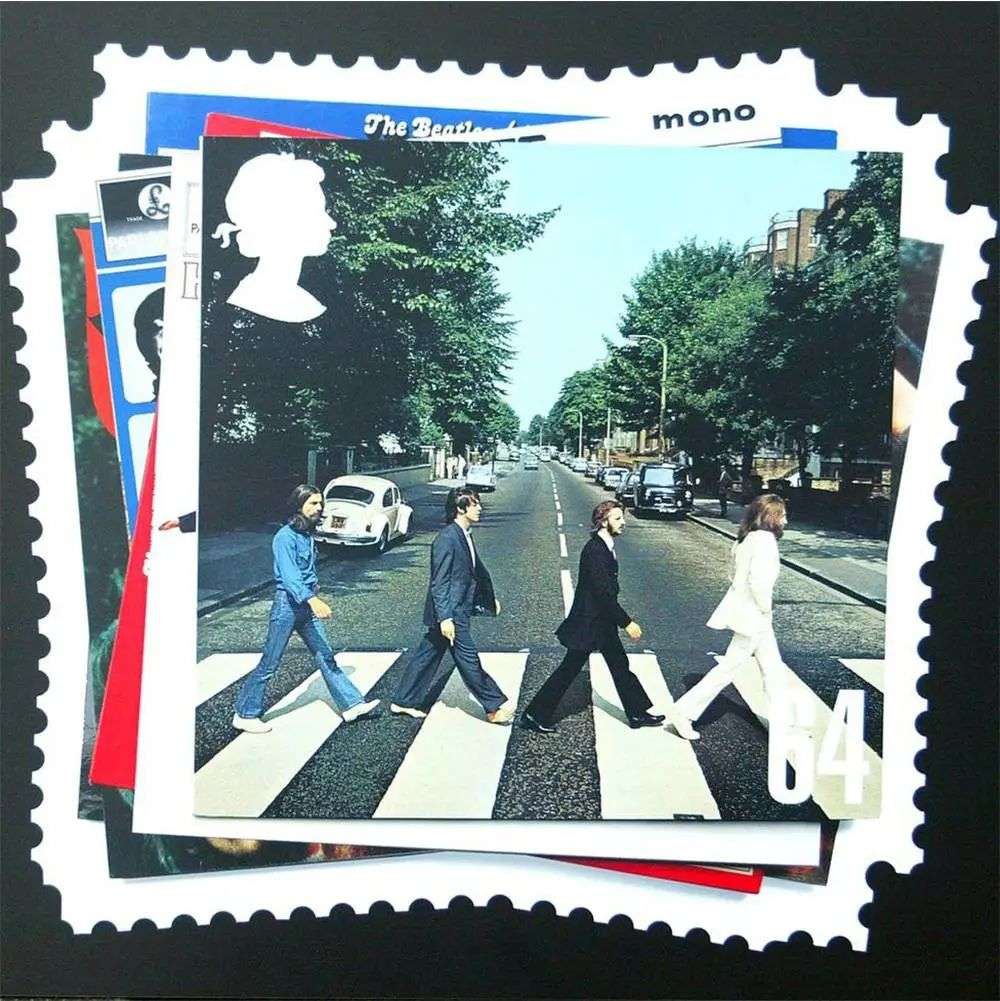▲印在英国邮票上的披头士乐队《艾比路》专辑封面照片. 图片来自:BBC