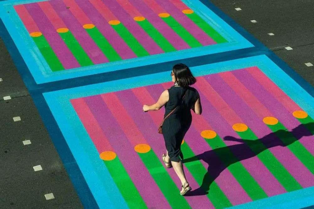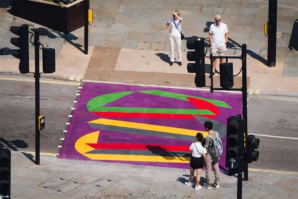 Yinka Ilori 和 Vanessa Jackson 设计的人行道看着有点像是抽象画,不过都是当下斑马线的变体,保留了易于辨认的线条,通过赋予更快乐的色彩,让原本有点单调无聊的路面多了一处处美丽的风景线。