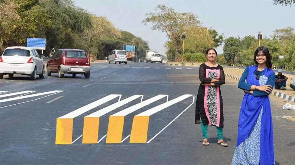 3D 人行道的创意来自印度,Shakuntala Pandya 和她的女儿 Saumya Pandya Thakkar 联手重新设计了艾哈迈达巴德市的传统人行斑马线。