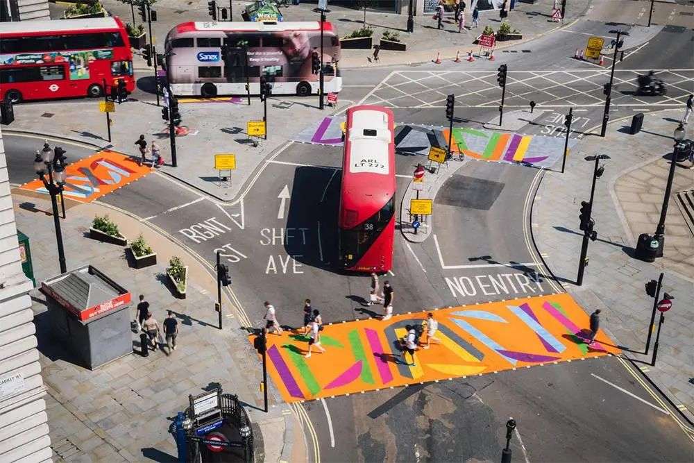 同样是在伦敦开展的艺术项目 Piccadilly Art Takeover 中,艺术家 Vanessa Jackson 设计出 13 条人行道,并为其命名为 Up Town Dancing(上城区的舞蹈),希望以此为城市带来欢乐的气氛。