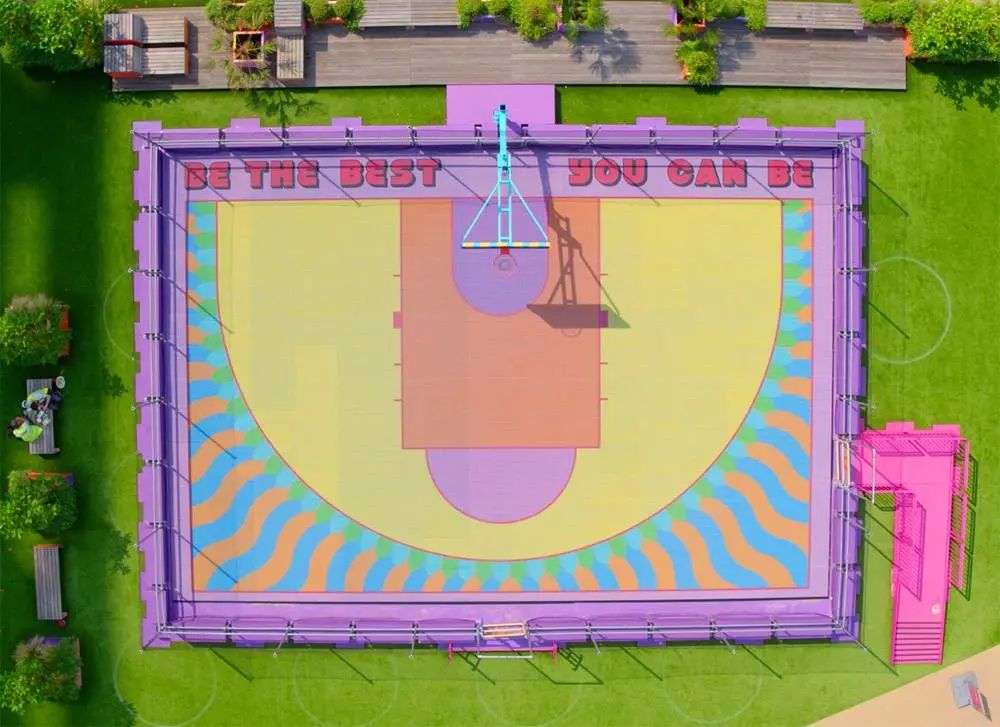 坐标当地的设计师 Yinka Ilori,成为这个项目的主导者。Yinka 非常擅长创作出让人看着开心的彩色作品,伦敦金丝雀码头的很艺术的彩色篮球场就是他的代表作之一。