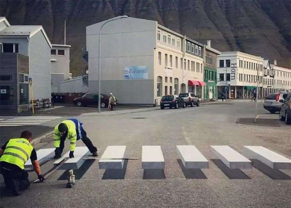冰岛小镇 ísafj?reur 在 2017 年将这个创意带到了欧洲,修建出看起来更立体、更真实的 3D 人行道。此后,3D 人行道开始在欧洲流行,被视为交通事故的解决良方。