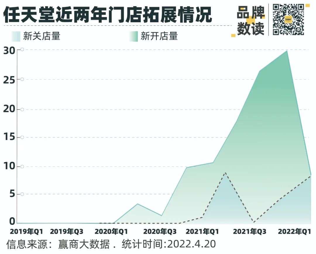 拿到授权的腾讯,加快了在国内推行任天堂Switch的节奏,线下渠道便是最好的例子。赢商大数据显示,2020年疫情后,任天堂在购物中心有过一段开店热,相较于2019年每季度店铺数目的零星增长,2021年每季度都有超过20家门店开业,全年净增70多家门店。2022年第一季度也保持了相同的增长态势,开店11家,和2021年持平。
