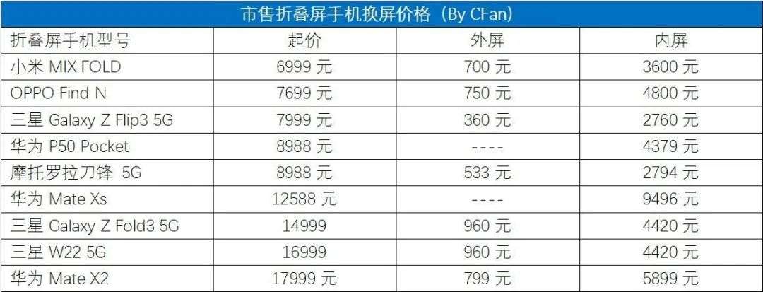 除了售价,与价格相关的折叠屏手机维修成本之高,也令人咋舌。