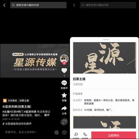 “这是抖音上近2-3个月比较火的一个主播招募模式。”