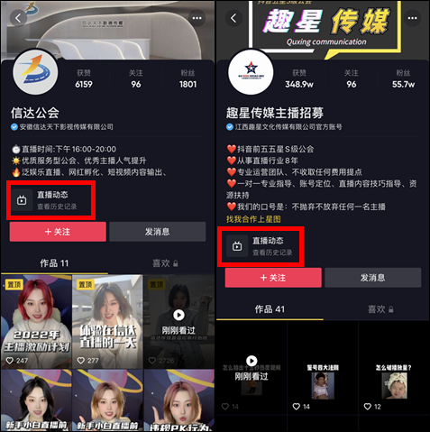 某公会长表示,他近期就自己在抖音上开播,通过聊天的方式,配合连麦互动为自己的公会招募主播。