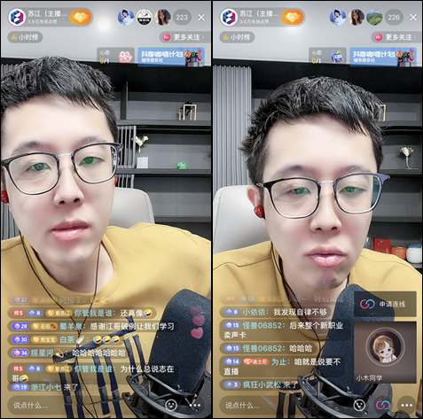 “有没有一个月音浪100万以上的(主播),可以来申请连麦。”