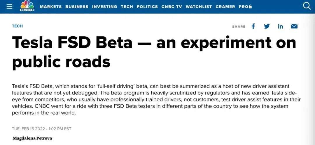 图 | CNBC:《特斯拉FSD Beta:一场公共道路上的试验》