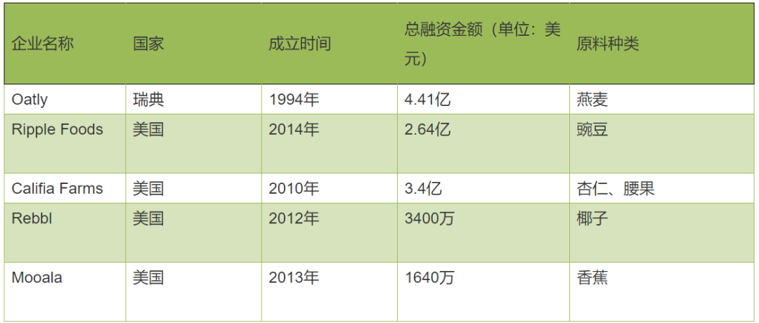 部分植物奶公司一览如下: