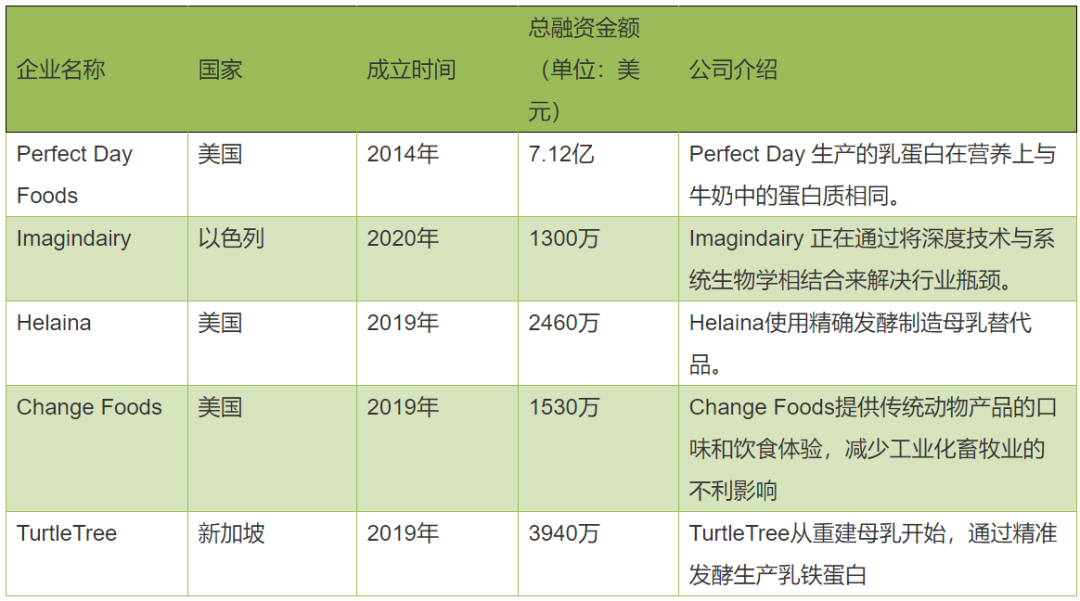 此外,还有Helaina、Change Foods、TurtleTree等公司通过精准发酵制造实验奶,部分公司一览如下: