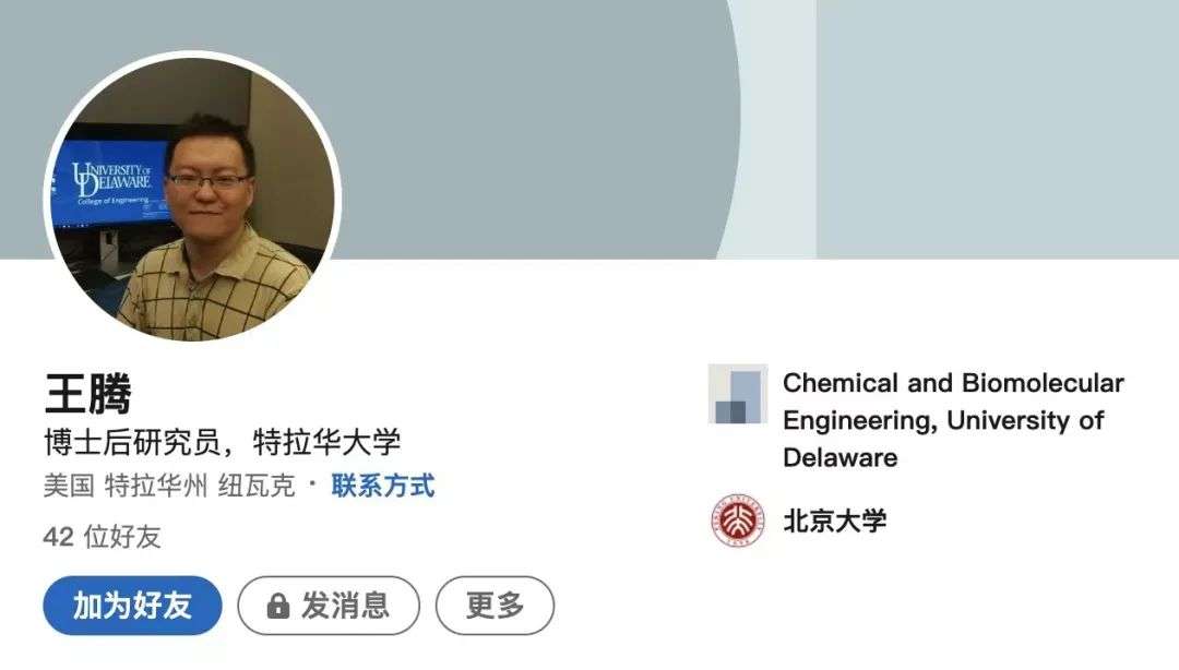 目前,王腾正在特拉华大学念博士后。