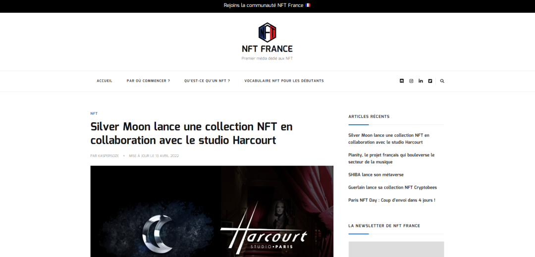 在法国,还有一个具有很强科普性和实用性的平台——NFT法国:用户可以从中看到各类与NFT相关的文章和资讯。