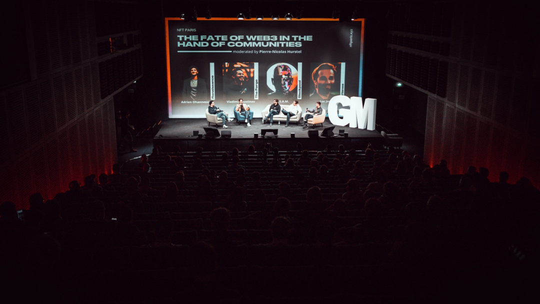 活动期间,四十余名演讲者热烈讨论了他们对Web 3.0的认识和看法。Station F里的屏幕上展示着艺术家们的加密艺术作品。