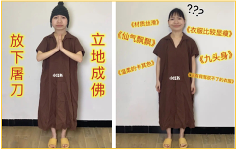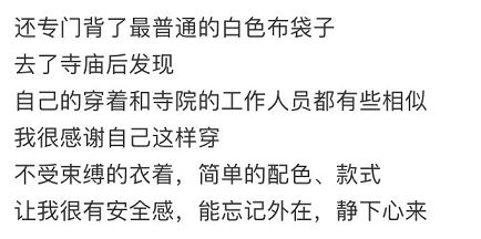 有博主甚至专门穿着尼姑风套装去寺庙祈福,因为和寺庙工作人员撞衫而心怀感谢。