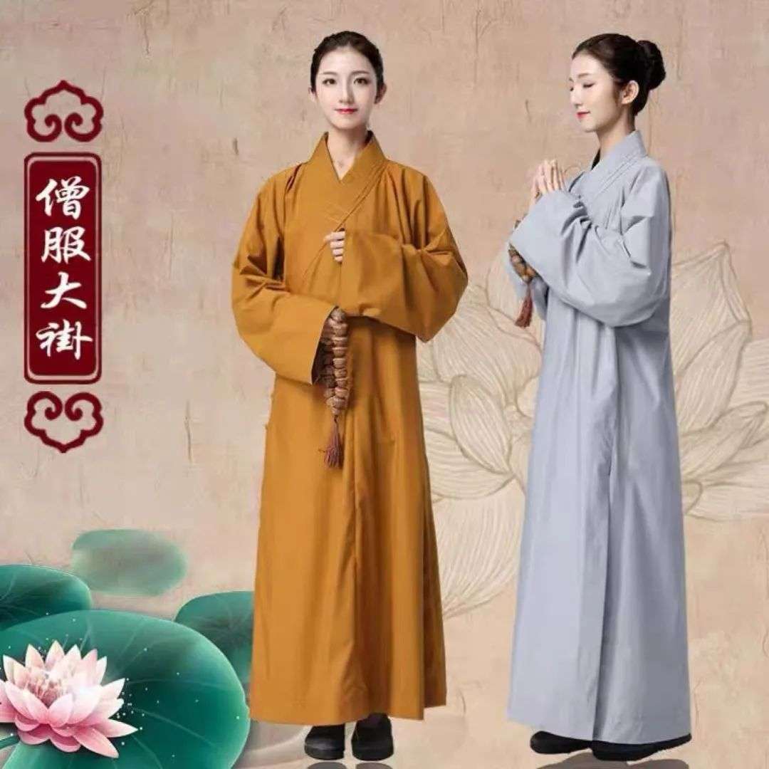 真正的寺庙服在佛门一般分为三种——海青、袈裟和长褂,男女僧众都可以穿,且常见的颜色有明黄、泥黑和咖啡三色。而僧尼穿的罗汉鞋,颜色一般也是灰、黄、褐三色。