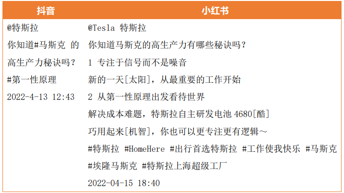 @Tesla特斯拉 就是较好的例子。整体来看,特斯拉小红书内容和其他平台有一定重合度,但并不是生硬照搬某个平台,而是将各平台物料根据适配度选择并“微整形”后再发布到小红书,具体有如下几种方式:
