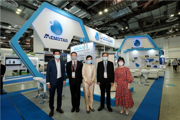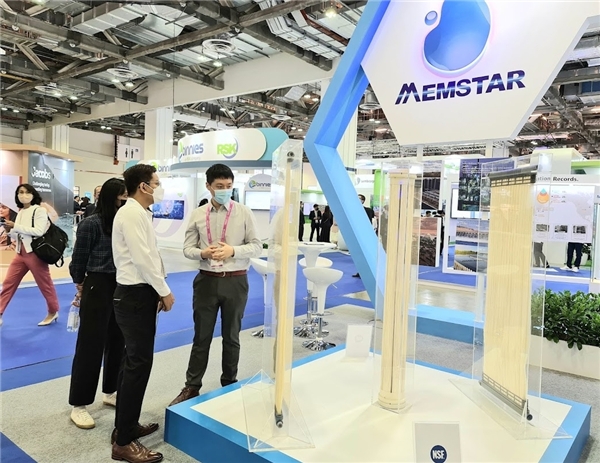 作为全球领先的膜产品研发制造企业,中信环境技术旗下美能公司(MEMSTAR)携自主研发的最新产品和技术亮相水处理展览会(Water Expo),展示国际先进的膜技术和水处理综合解决方案,备受关注。活动首日,新加坡永续发展与环境部部长傅海燕(Grace Fu)、永续发展与环境部兼交通部高级政务部长许连碹(Amy Khor)、内政部兼永续发展与环境部政务部长陈国明(Desmond Tan)亲临美能公司展台参观,了解中信环境技术和美能公司的发展情况。中信环境技术执行董事、高级副总裁、美能公司CEO庄永昭博士,中信环境技术副总裁、美能公司设计总监刘建林博士陪同介绍。