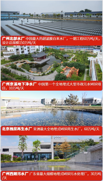 中信环境技术成功将美能MBR(膜生物反应器)技术、连续膜过滤(CMF)技术和反渗透(RO)技术应用于各种水处理项目,特别是在工业废水、大型市政污水以及饮用水的深度处理领域具有丰富经验,承建了多个行业内的标杆工程,累计投资环保项目近百个。在中国处理量10万吨/日以上的大型工业污水处理领域,美能膜市场占有率超过50%。