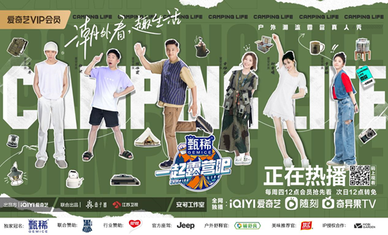 4月28日,由爱奇艺出品,鱼子酱、江苏卫视联合出品,爱奇艺安可工作室共同制作的户外潮流露营真人秀《一起露营吧》迎来首播,包括陈伟霆、黄雅莉、王子异、杨迪、钟楚曦、章若楠在内,六位风格迥异的嘉宾一起组成露营家族,他们将在接下来的旅途中打卡5个潮流营地,感受自然风景疗愈人心的力量,用沉浸式体验带领观众“云”露营,打开观众探索生活乐趣的新视角。