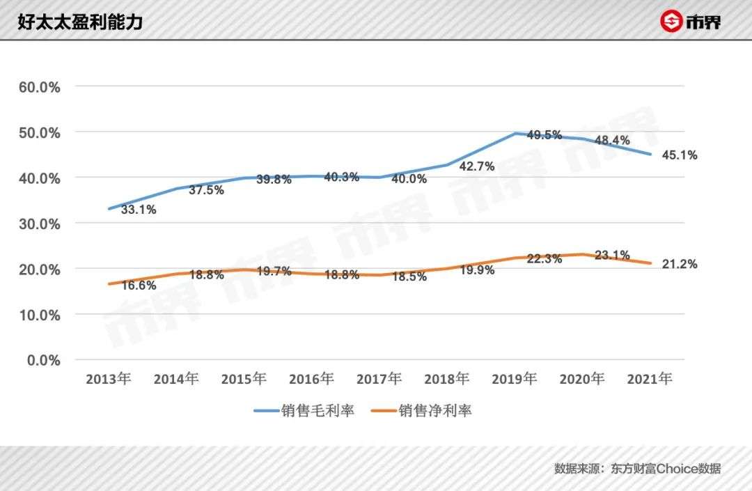 近年来,公司的净利率也基本维持在20%左右,这意味着,公司每卖出去10块钱,就能赚到两块钱。