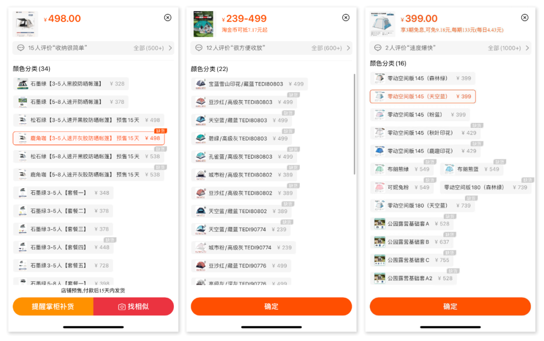 五一前的火热销售,也导致露营装备缺货的状态还在持续。记者发现,现在淘宝上探路者、迪卡侬等官方旗舰店里,部分热门款式帐篷仍显示缺货。