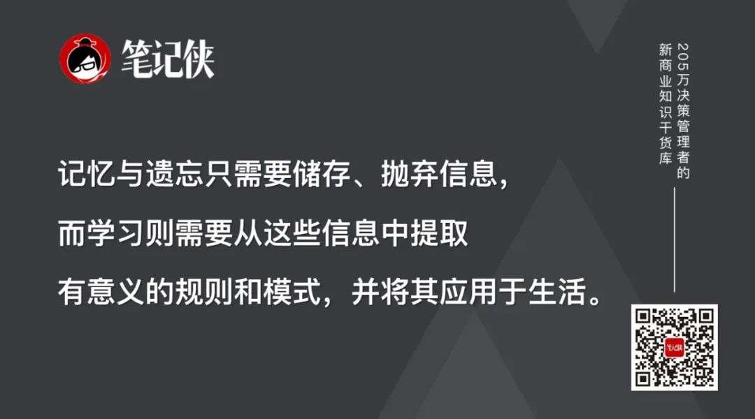 记忆与遗忘只需要储存、抛弃信息,而学习则需要从这些信息中提取有意义的规则和模式,并将其应用于生活。