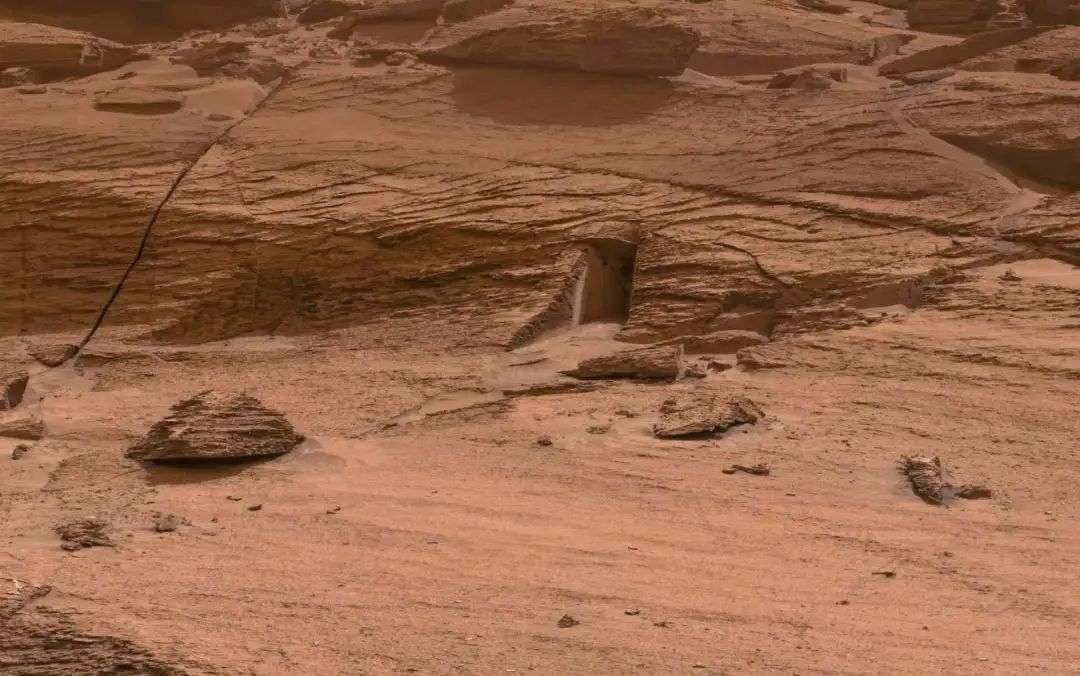 这些岩石层暴露在地表后,受到火星风的侵蚀,照片上的「门」里面甚至都能看见一些侵蚀的痕迹。