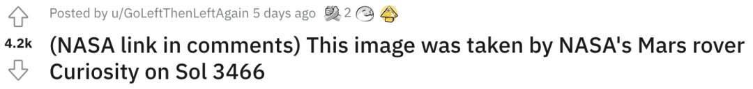 2022年5月7日,在火星上游荡了10年的好奇号传回上面的这张照片。