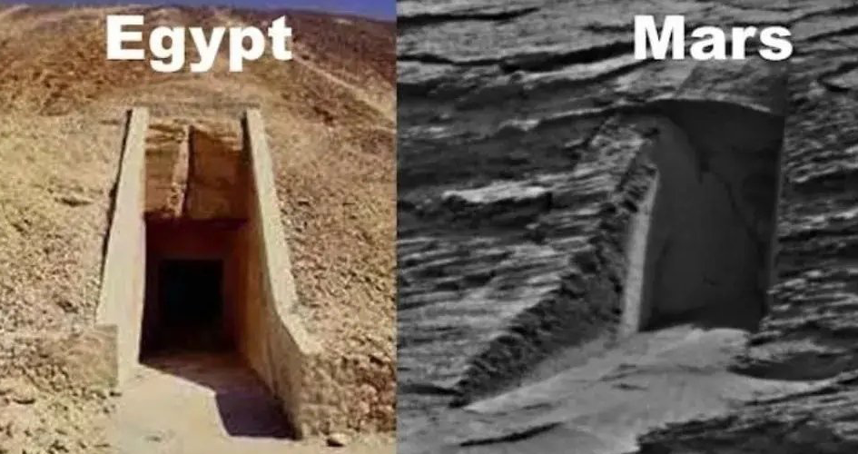 有网友发了一张埃及和火星的对比图,煞有介事地表示这肯定是火星人的地下墓穴,没跑了。