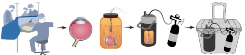 为克服这一障碍,研究团队在器官捐献者死亡后20分钟内就获得了他们捐献的眼睛,然后置入特殊设计的保存装置,来在运输途中就开始恢复遗体眼睛的氧气化合反应和其他营养供应。
