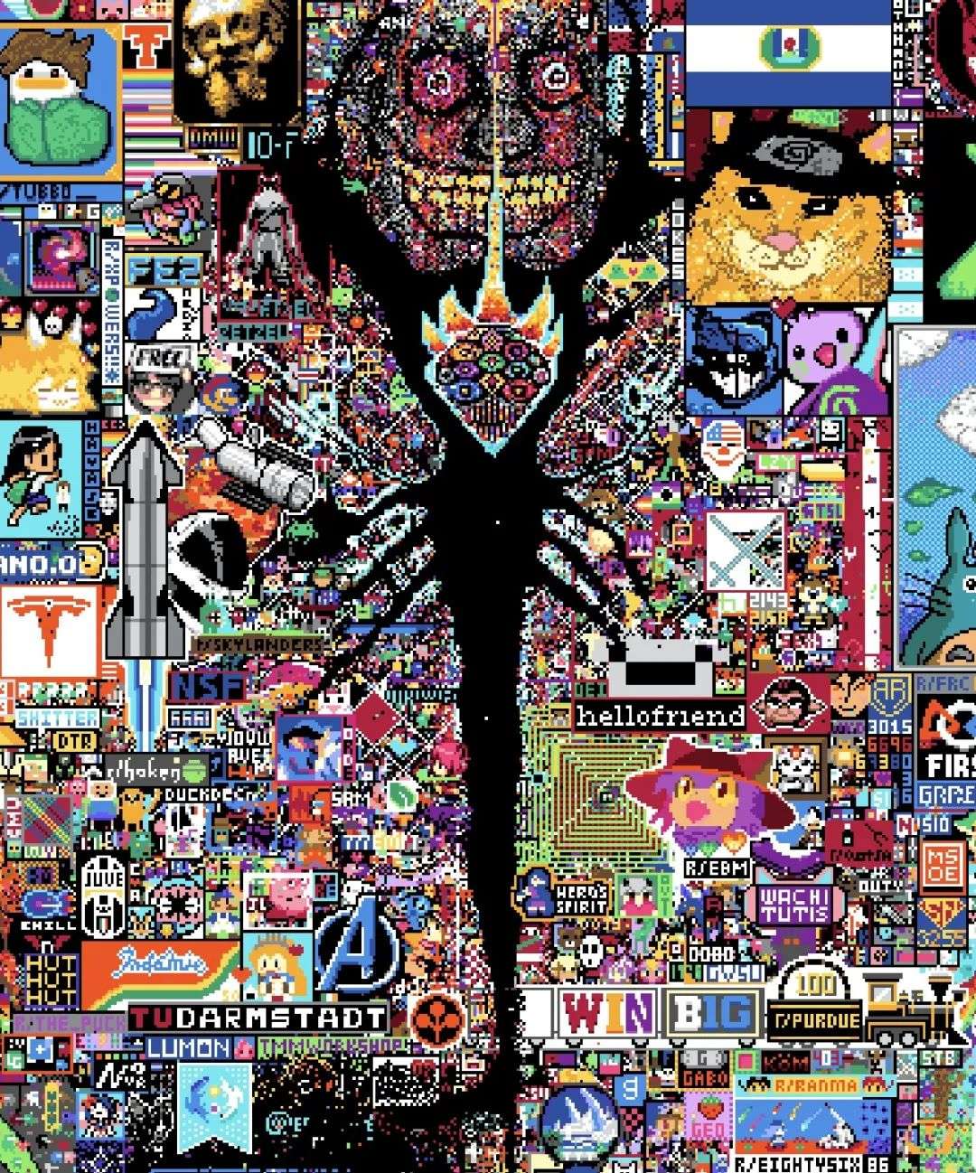 r/Place 这张共创像素画布上的众多涂鸦,体现了这种公共性。不过,第一次让共创像素画布进入大众视野的项目,与 r/Place 的定位相反,它对网络空间进行了私有化。