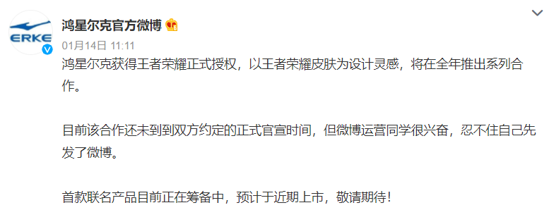 例如今年鸿星尔克和王者荣耀共同策划的联名宣发事件,由于微博运营人员的不专业使得消息提前公布,导致了负面舆论的发酵扩散,也为双方品牌带来了不好的影响。