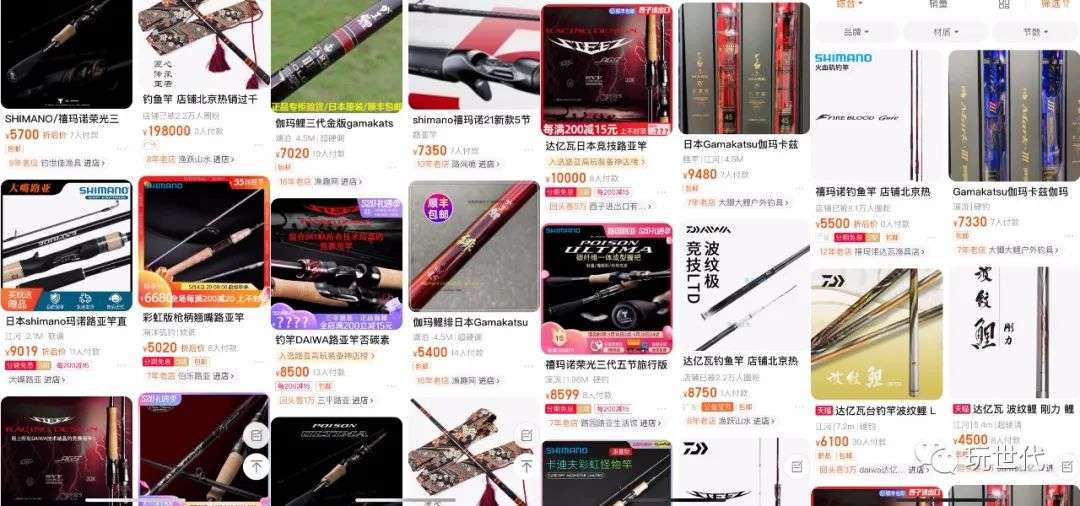 进口品牌中,DAIWA达瓦、shimano禧玛诺、gamakatsu伽玛卡兹、美国的圣克鲁伊、瑞典的阿布贾西亚,价格都不便宜,甚至动辄万八千。虽然仿品可以省去一个零,但没有一个资深爱好者会在“身份勋章”上妥协。