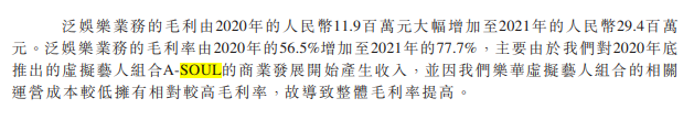 根据乐华娱乐招股书显示,与虚拟艺人有关的泛娱乐收入由2020年的2108万元增至了2021年的3787万元,同比增长了79.6%。需要指出,这是与字节方面分成后的数字,且经过了B站的直播分成。